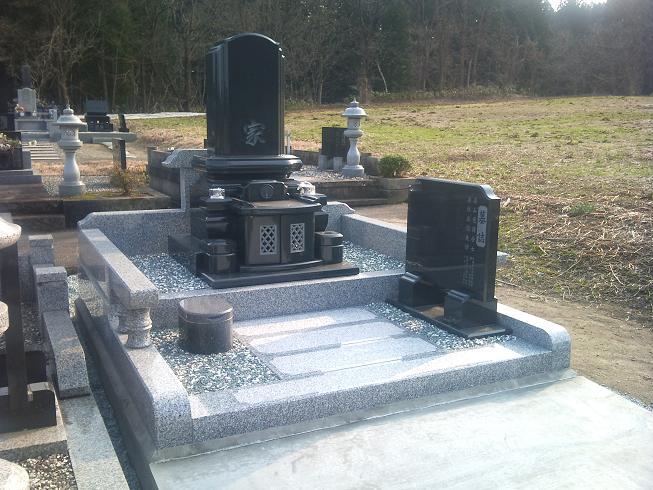 ○セレブ型+かすみU型 7.0×8.0(尺)連休にご予定のご法事にあわせてご建立させて頂きました。ご主人と奥様は娘さんのご意見も取り入れ、ご年配の方と若い方との意見が一致しやすいこの形に決定なさいました。大変細長い墓地ですので手前側は参道として活用できるよう土間コンクリートで仕上げました。山形県白鷹町に施工させて頂きました。2011年4月お引き渡し。
