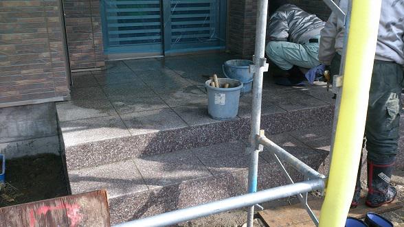 O様宅新築工事に伴う石工事です。玄関はG664の磨きとJB材を使用しています。恩師でもあり母校野球部の先輩でもあるO様宅です。