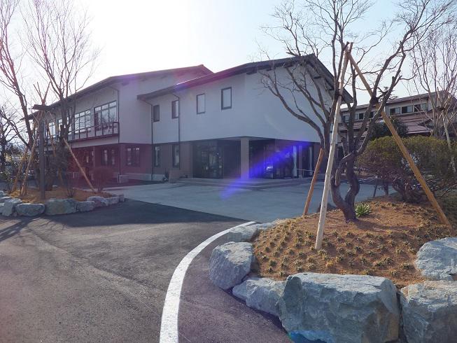 長井市成田にある長井観光はぎ苑様新築工事。今回石工事を担当させていただきました。玄関・風除室 ロビー 渡り廊下
