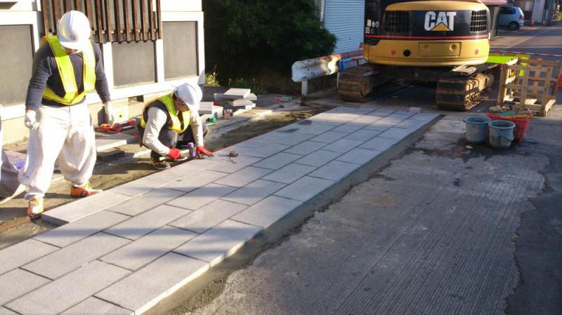 長井市あら町地内、石畳工事開始です。 約900u以上、延長600メートルほどの石畳の施工です。 我々の石畳施工は12月中の完了を予定しております。