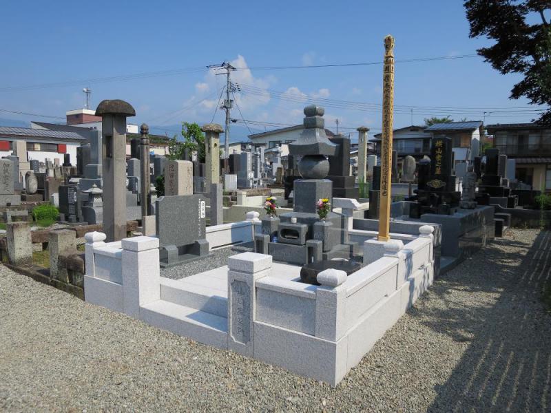 ○デザイナーズ墓石 誠心 五輪塔 インド銀河に稲田石小叩き仕上げを合わせました。 落ち着きと上品さ、素敵なお墓に仕上がりました。