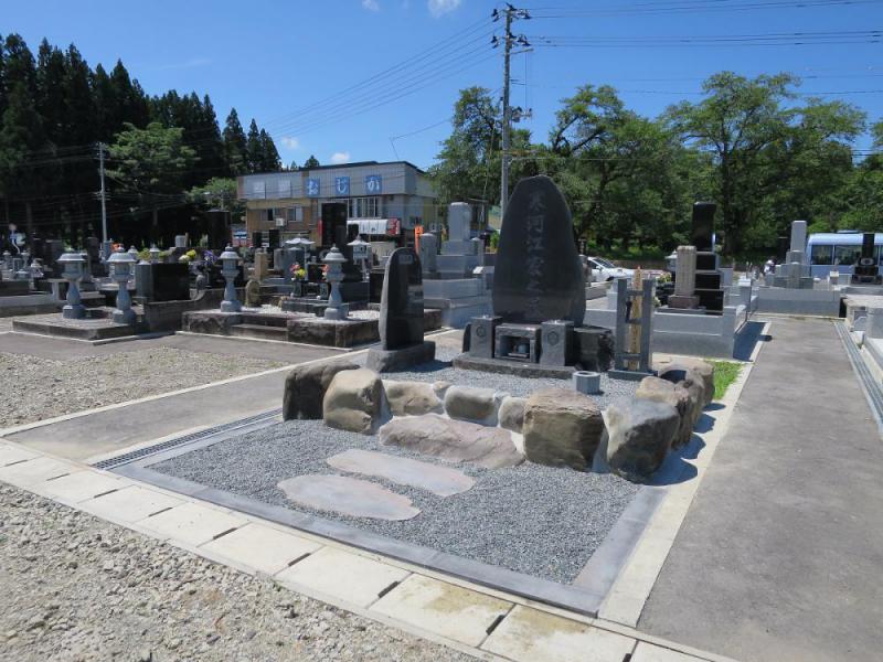 蔵王油石の大きなお墓です。 廻りに積んである自然石はお客様が長年かけて集められたものです。 存在感と落ち着いた雰囲気がとてもバランスよく融合しています。 山形県飯豊町に施工させていただきました。