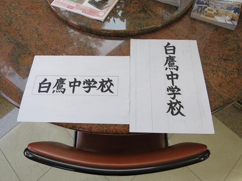 当社のある山形県南の置賜地方では近年小中学校の統廃合が進んでいます。 隣町の白鷹町には東中学校と西中学校がありました。21日土曜日に閉校式があり4月からは新生白鷹中学校として今までの白鷹東中学校に統合されます。 TOP写真は校名変更に伴い交換される銘板の原稿です。 本日黒御影石で作成された銘板を取り付けてきましたがお披露目はまだですので伏せておきますm(__)m