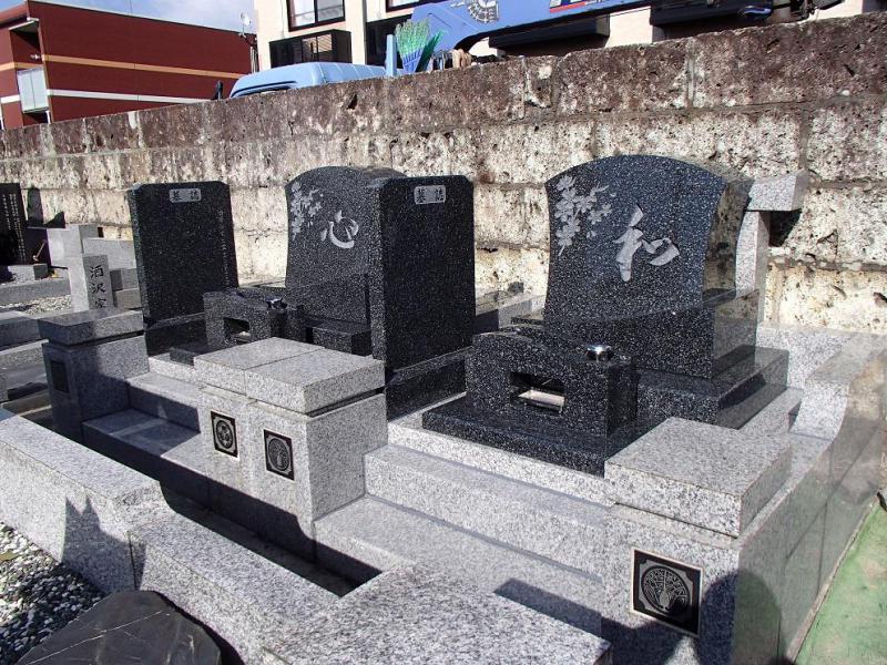 既存の外柵にお石塔『流麗型』をお納めさせていただきました。 正面には桜の花の彫刻と一文字が彫ってあります。 優しさあふれるお墓となりました。 栃木県宇都宮市に施工させていただきました。
