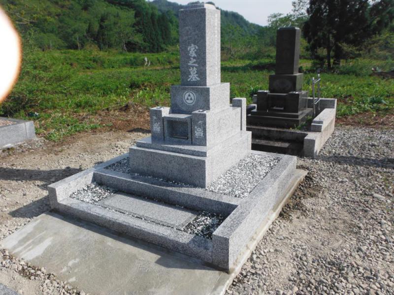 ○シンプル和型この地域ではそれほど大きな区画ではありませんがシンプルに和型をご選択頂きました。半年近く雪に閉ざされる地域でお住まいの方も少なくなりましたがご先祖様のご供養に帰省されることができることは幸せだと思います。 山形県小国町に施工させて頂きました。
