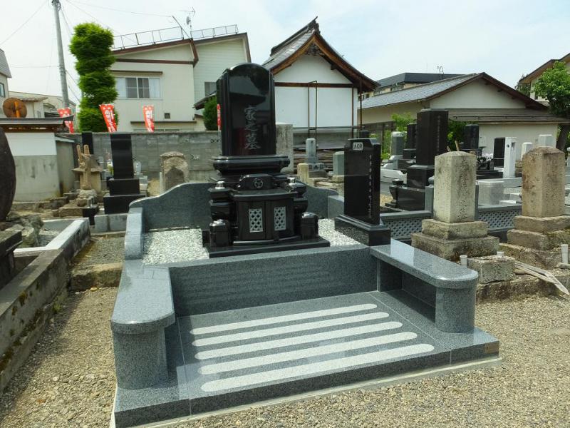 ○葵型ここ数年たくさんの方にお建ていただいた葵型。このお墓は納骨のしやすさと機能性、デザイン全てにおいてご満足頂いている結果、多くの方のご支持が得られていると思います。亡き人とのお墓での時間がゆっくりと過ごせるようにとの想いからベンチが付いた外柵になります。 山形県米沢市に施工させて頂きました。