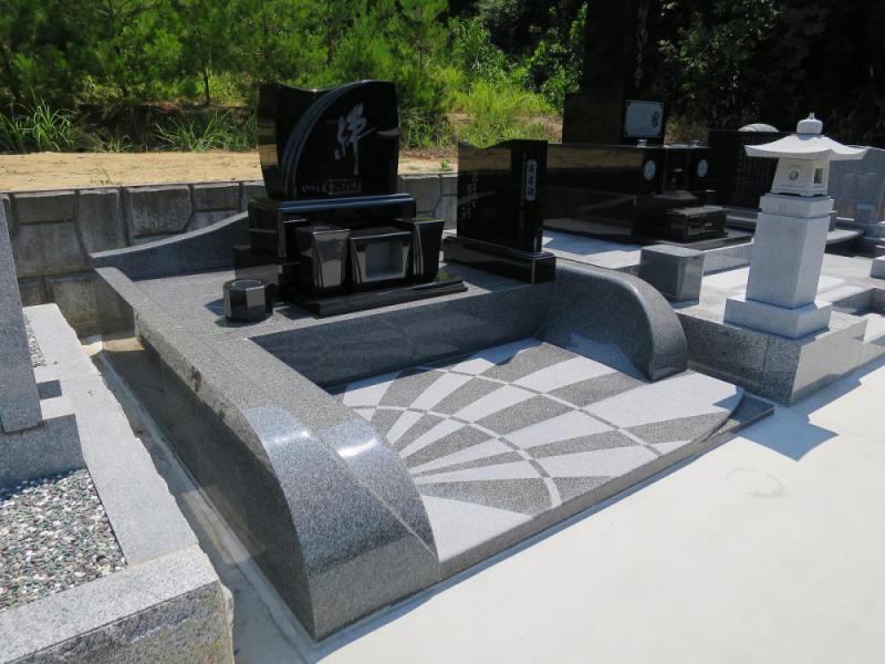 ○ストリギス型 以前にもご紹介したストリギス型。今回はそれをインド産黒御影石クンナムで。外柵をインド産ロイヤルブラウンでの施工です。 このフロア部分、何を表しているかわかります?亡き人が好きだったダーツの的です。 中心にはダーツの矢が↓ ダーツの矢にはご家族の亡き人への思いを込めました。 これから先このお施主様家族にとってお墓が亡き人との語らいの場所として長くお守り頂けると思っております。 山形県白鷹町に施工させて頂きました。