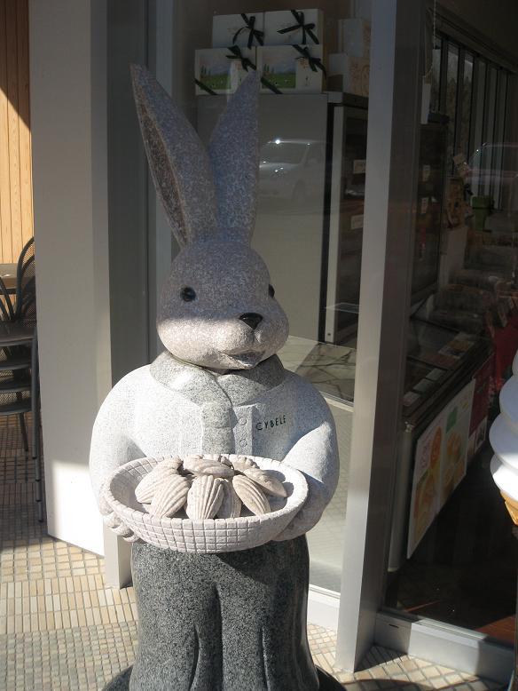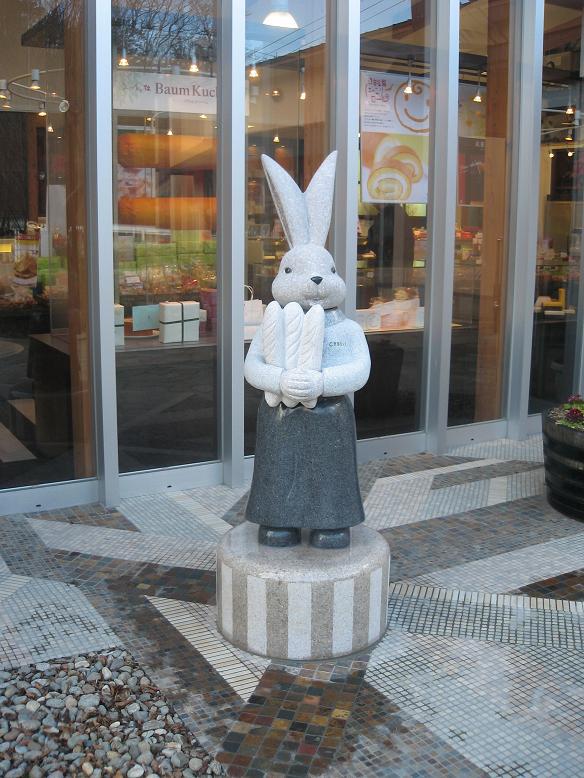 連日の大雪、山形県内の皆様は除雪作業にお疲れのことではないでしょうか?ブログの更新も怠っておりましたので昨年末から2月まで約3ヶ月ほど取り掛かっておりました彫刻品をご紹介いたします。山形県内はもとより全国各地に多くのファンを持つラスクや洋菓子、パンやレストランを展開されてます株式会社シベール様より店舗前に設置されるうさぎの石像をご依頼頂きました。写真はお買い物をしているうさぎちゃんです。すべて御影石を使用しており、足から耳までは130p程ございます。このタイプは山形市蔵王松ヶ丘の本社シベールファクトリーパークと宮城県内の明石台店、桂店、名取店の4ケ所ににございます。