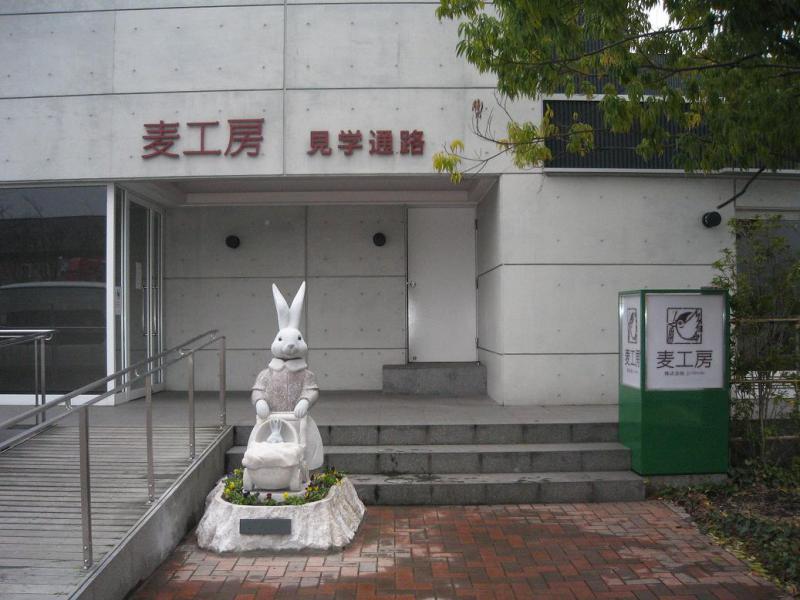 本社の麦工房見学通路前にはベビーカーを押した