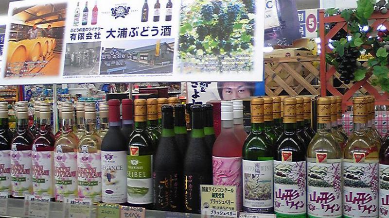『山形ワイン(白甘、ロゼ、赤)』720ml、1,800ml、『甘美』、『ブラッシュベリー』、『セイベル』、『南陽ワイン』などが定番商品。夜12時まで営業してます。