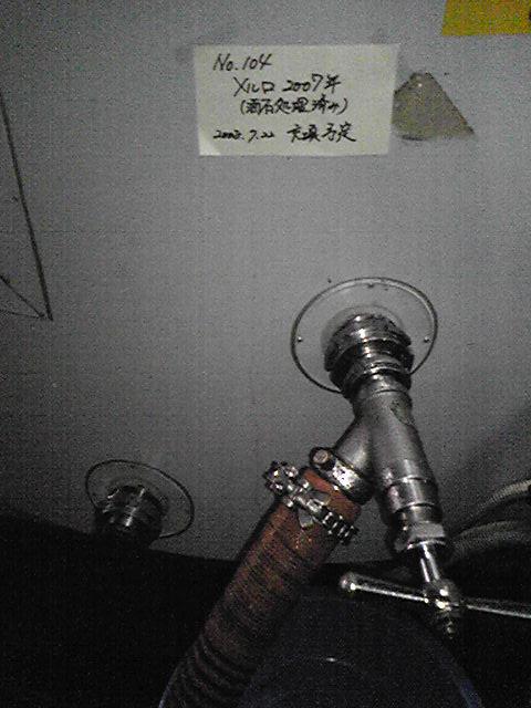 間もなく出荷する予定ですので、今日タンクから昨年(2007年)仕込んだメルロのワインを瓶詰めしました。本来2年程寝かせてから出しったったげんと、今回は若干ライトな風味の『メルロ』になります。