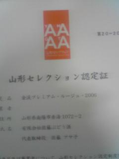 7月30日、県庁の5階502会議室で、山形セレクション加工食品分野(ワイン)認定証交付式がありました。佐藤ぶどう酒からは代表取締役の佐藤アサ子が出席致しました。副知事の荒木さんからじきじきの交付式ということでかなり緊張したようです