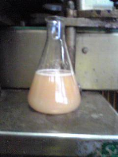 デラウェア発酵4日目の画像です。3日目と外観はほぼかわりませんが、飲んだ感じはアルコールを感じます。だいたい5度前後だとおもいます。いままでは発酵温度は16℃くらいでしたが、今日の夜からは12℃にします。