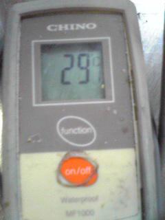 8月31日、赤ワイン(小公子)の発酵温度です。29℃と白ワインからみればかなり高めですが、ほとんどの赤ワインは20℃〜30℃くらいで発酵させます。