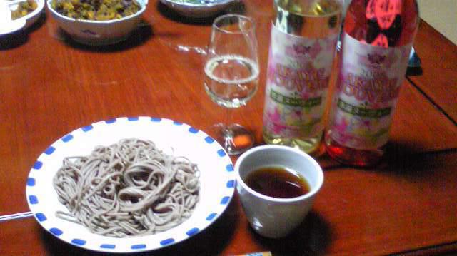 出来立てを夜、家族で味わいました。以前ソムリエの話で、山形のデラのワインは、山形のソバに合うと聞いたので、ソバと一緒に飲んでみました。やっぱり合うっけ。