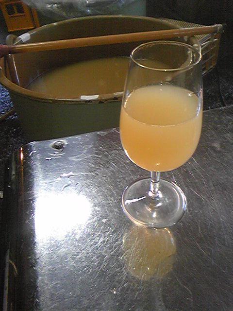 今日は、2008年産のシャルドネで造った、無濾過の濁りワインを充填作業しました。