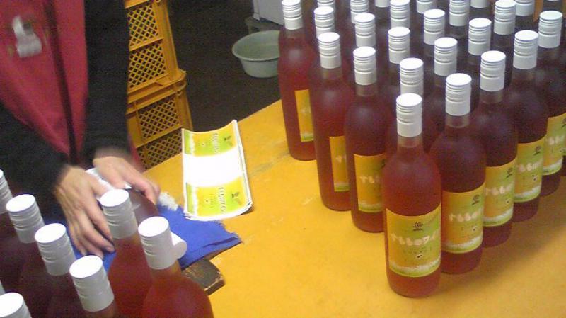 明日は、おしんすももの会主催の『すもものワインパーティー』が中山町中央公民館で行なわれます。昨日と今日は、それに出すすもものワインを瓶詰めしたり、ラベルを貼ったりの作業でした。
