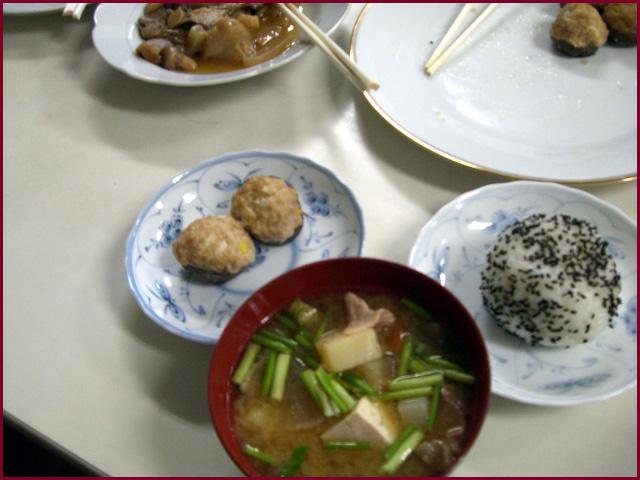 お待ちかね、これがお楽しみの「立春朝ご飯」、千代寿蔵の女性陣が毎回手作りしてくれる心尽くしのご馳走です。