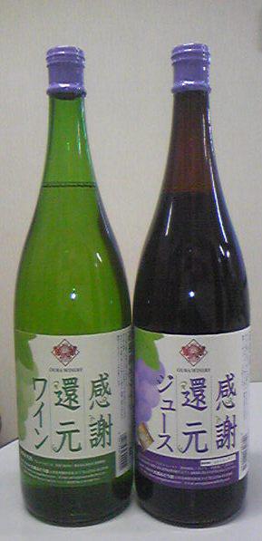 おしょうしなの気持ちをこめて、近日中に『感謝還元ワイン』と『感謝還元ジュース』を発売します。徳用一升瓶の白ワインとストレートぶどうジュースを、還元ということで通常よりもお安くお出しします。70周年を記念しての特別限定品です。