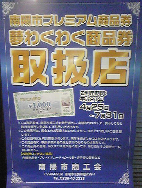 ▼『南陽市プレミアム商品券』本日よりご利用出来ます