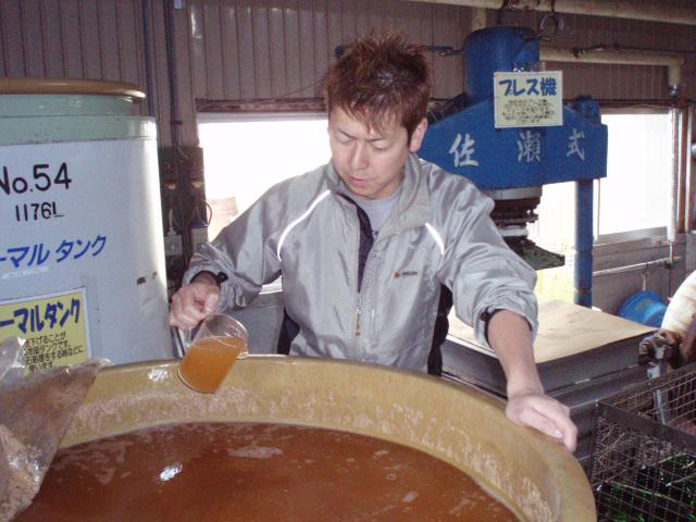 甘いワインは、ちょうどいいあんばいで発酵止めんなえがら、一日ずっちぇも甘味の度合いが違ってきます。今日の分析の数値から行くと、あと3日位発酵続げんなえな。