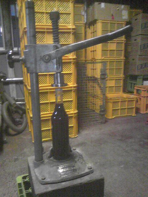 いやーしかし、手動式のはレバーを下げるのにかなり力いるので、何百本となるとかんなりくたびれます。力が弱いと、きちんと王冠が締まりません。