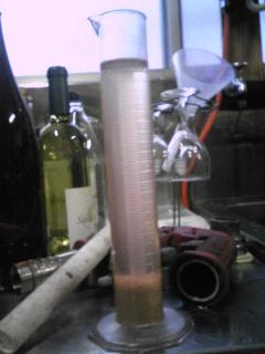 昨日仕込んだデラウェア種の果汁を冷蔵庫のタンクから仕込み蔵のタンクに移動しました。果汁にペクチン分解酵素を添加して4℃の冷蔵庫で一晩おくと画像のようにきれいになります。