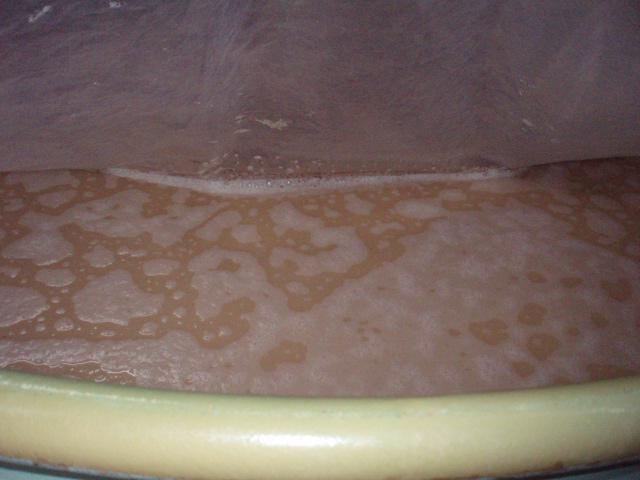 画像は8月末に仕込んだデラウェアーの醪の現在。もう発酵を止めた甘口用のタンクもあけんど、現在発酵してんのは、辛口用のもの。