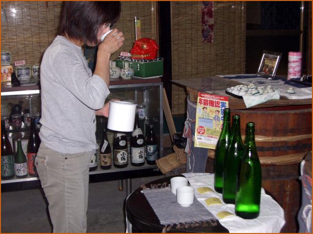 画像は真剣に利き酒する酒屋女将