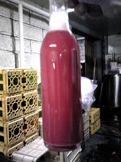 新酒・赤・やや甘口ワインのおりひきの画像です。一見、わかりずらいですが、ビン底にオリや酵母の残存があります。