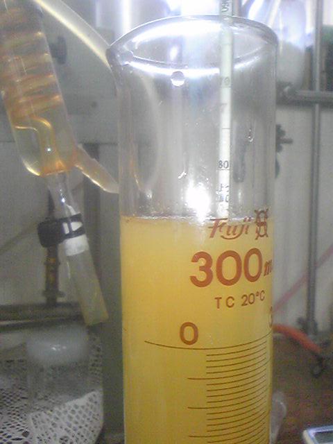 画像は比重計で今日搾ったシャルドネ果汁の比重を測定し、糖度を調べます。仕込み期間中は果汁以外にも、発酵液もこの比重計で測定するので、出番が多くなります。