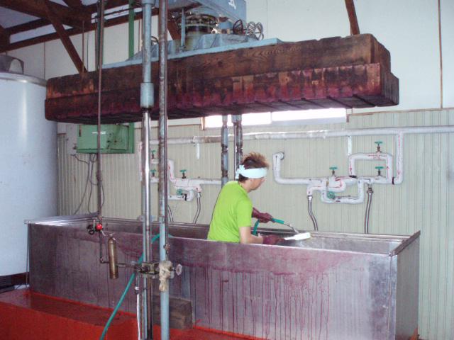 ▼ぶどう圧搾機洗浄