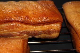 (2)他にもっと簡単な燻製料理も沢山あるのだが、ベーコンづくりにこだわるのは味のポイントになる調味具材だからだ。以前、(魚の)カツオの一番美味しい食べ方は「カツオ節」だ、という話を聞いた事があるが、もしかすると、それの感覚に近いのかも知れない。