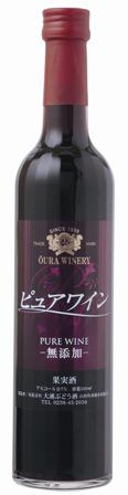 おらいの完全無添加で造っている『ピュア』という赤ワインだげんと、この度リニューアルしました。今まで720mlさ詰めったったげんと、500mlの多面体のスリムボトルになり、ラベルも一新しました。