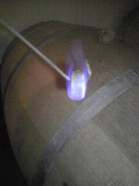 今週、先日洗った樽にワインを入れる為、今日は日曜日なので店番してる合間を見て、樽の中を硫黄燻蒸し殺菌してました。