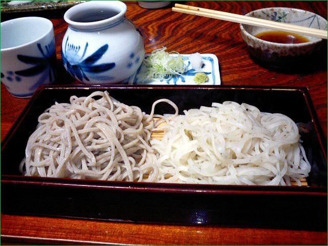 最後は更科に青紫蘇を練り込んだ紫蘇きりと蒸篭の二色盛り。