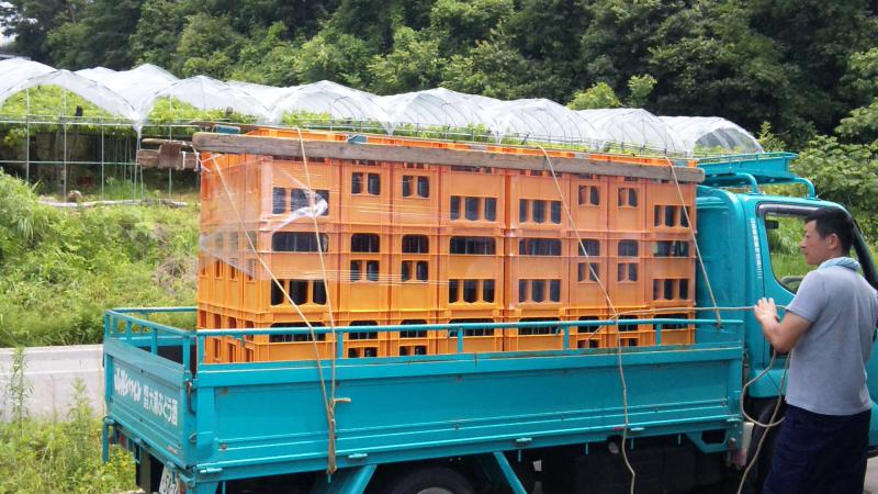昨日と打って変わって、天候に恵まれた今日一日でした。昨日タンクから詰めた2009年産のマスカット・ベリーAのワインを今日はP箱さ入れて、パレットさ積んでトラックで松沢の貯蔵庫へ運搬。ワインは適温の貯蔵庫でしばらく熟成に入ります。