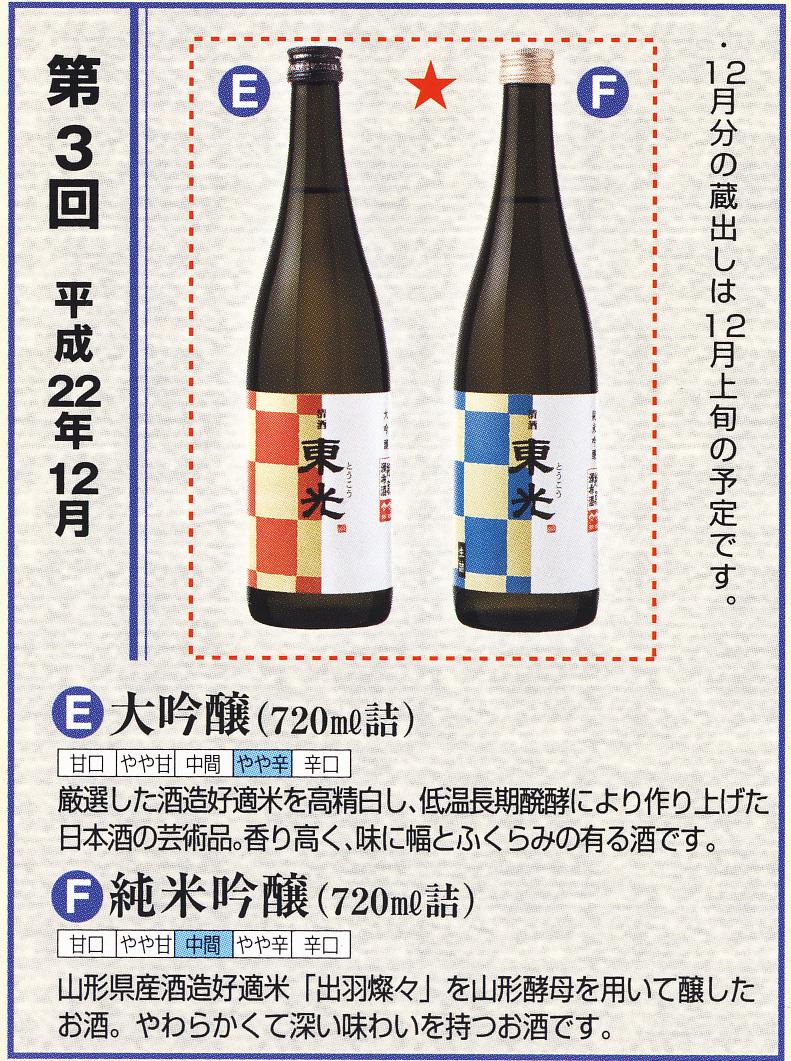 ▼清酒 東光特別頒布会吟醸酒コース12月分