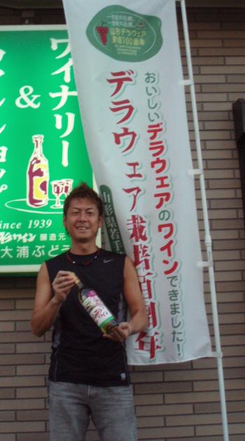 この厳しい残暑にオススメの『山形ワイン(白・辛口)』。珍しいデラウェアーの辛口タイプ。生食用の甘いぶどうで造ったので、フルーティーで飲み易いげんと、けっこうエキスを切らしてるので、スッキリさもあります。暑い日は、あんまり甘ごいのよりは、こういうスッキリした感じの白ワインがオススメ。