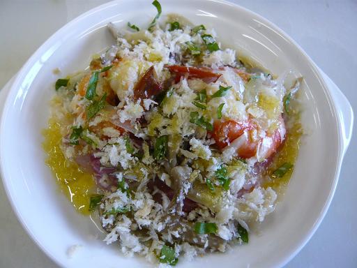 写真は真鯛と海老とマリネしたキノコのハーブパン粉焼きです。