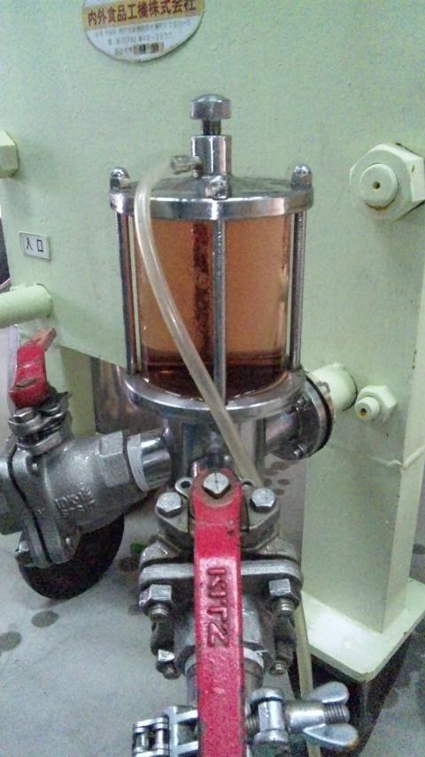 今日は今年の『赤湯ヌーヴォー(ロゼ)』になるタンクのワインを、粗濾過作業を行いました。画像は検液筒から見える濾過中のワイン。検液筒のワインを見て、濁りがなくなるまで循環させます。濁りがなくなったら、きれいになったワインを違うタンクへ送ります。