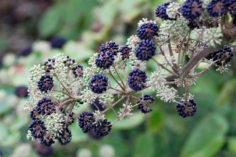 コース脇で栽培されているウドの実(種)が黒く実りはじめ、