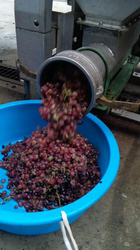 普通この時期だと、デラウェアーは収穫が終わって無いげんと、観光ぶどう園で棚整理して余ったデラがおらいさこの時期でも入ってきます。デラのワインは9月頭で終わりにするもんで、この時期のデラがかなりの遅摘みなので糖度が物凄く高い為、ジュース(原液)用に搾ります。