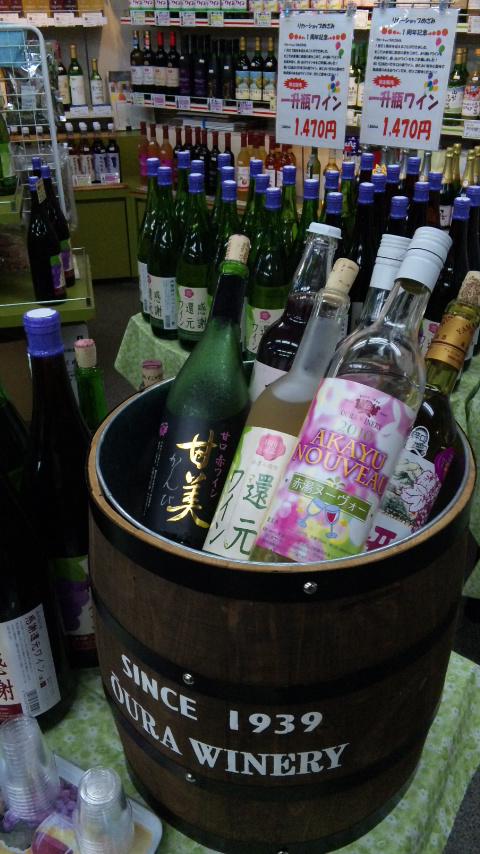 さて今日から7日(4日と5日は展示のみ)まで、飯豊町めざみの里観光物産館のリカーショップめざみにて、おらいの試飲即売会を行なってます。今日は秋の収穫祭第3弾ということで、雨にもかかわらずイベントがあり、多くのお客さんで店内混んでました。本日催事当番でオラ販売したげんと、残りだいぶ少なくなった(年内限りの発売)リカーショップめざみ限定の『感謝還元ワイン』(1,800ml ¥1,470)がけっこう売れました。他に、出来立てフレッシュな『赤湯ヌーヴォー2010』も試飲販売してます。週末天気いいようだがら、是非ござっとごえ。