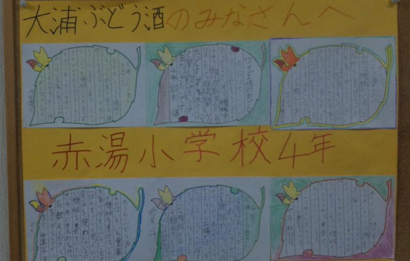 先日、カベルネのワイン仕込みしった時に見学に来た赤湯小学校4年生より、御礼の感想文を頂戴しました。初めてワインを造ってるところを見て、驚いたようでした。地元の特産品を学ぶというのはいいことなので、これからも興味を持って、大人になっても覚えてて、将来おらいのワインを飲んで欲しいと思います。