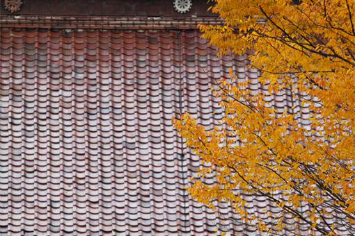 ▼国分寺薬師堂(山形市内)の屋根。あー、晩秋ですね。