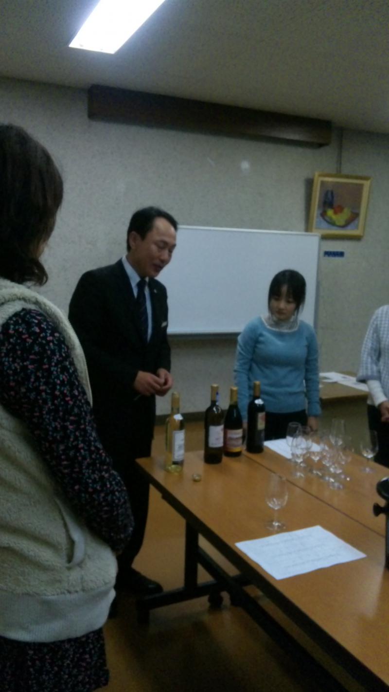 前半は講演で後半は実践。後半では赤湯4社のワインをテイスティング。その前に久松さんがソムリエナイフを使って抜栓。受講者の方々は興味津々にプロの手際よい抜栓の仕方を見ったっけげんと、実際抜くとなっと悪戦苦闘してました。