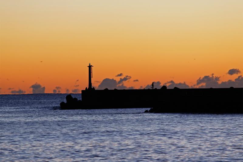 釣り人がひとり、ゆっくりと防波堤を歩いて行った。