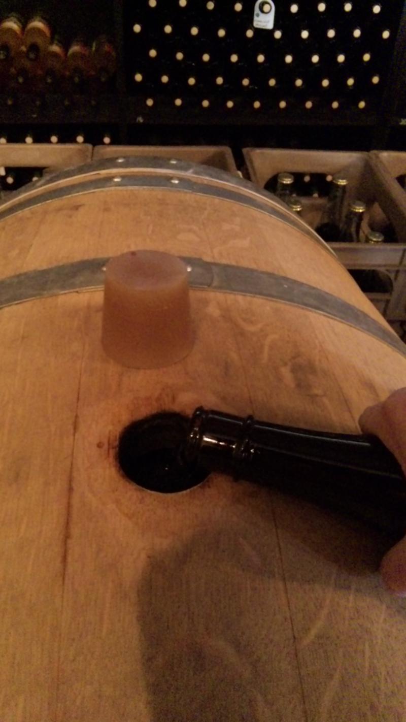 今日は今年最後の樽熟成中のワインに補充作業。一升瓶に補充用の同じロットのワインを詰めているので、それを樽入れてます。樽は木なので、中のワインが熟成中少しずつ蒸発しるので、空気の部分をなるべく無くし酸化を防ぐため、時々補充してます。