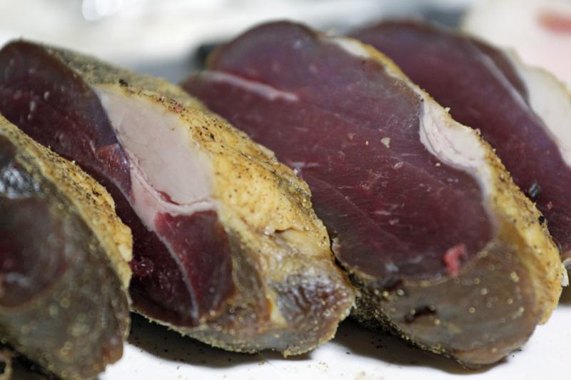 今回は、塩蔵熟成を一ヶ月、その後塩抜きして軽く塩コショウして風乾し、